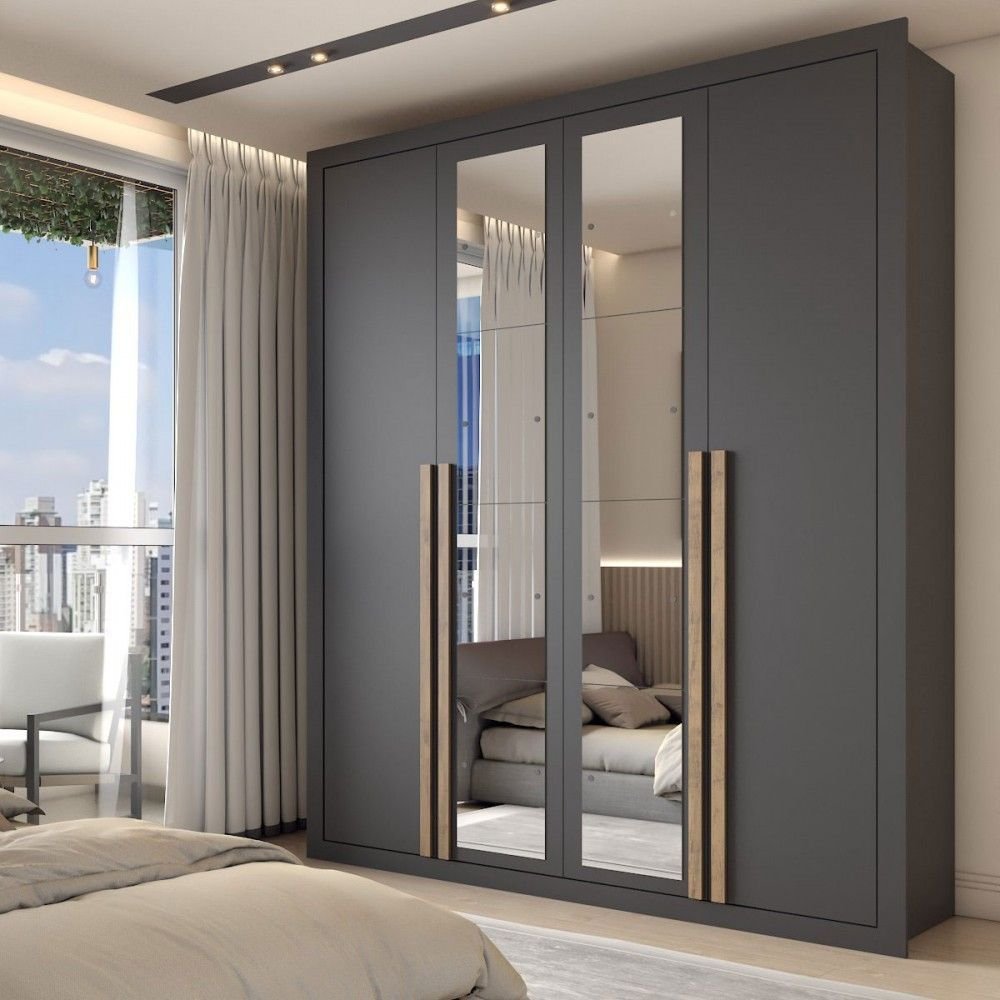 Guarda Roupa 4 Portas Solteiro Mayra Preto - Móveis Arapongas Preto Fosco