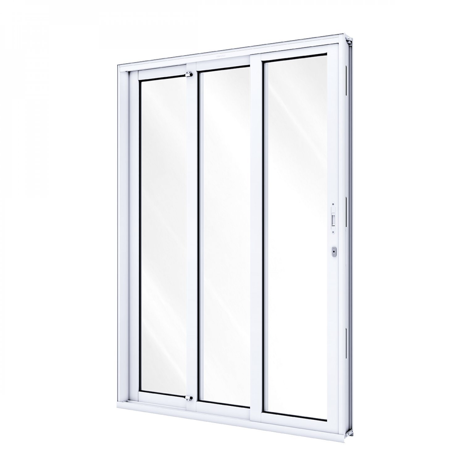 Porta de Alumínio de Correr 215x150cm 3 Folhas com Vidro Liso Lucasa Alumínios