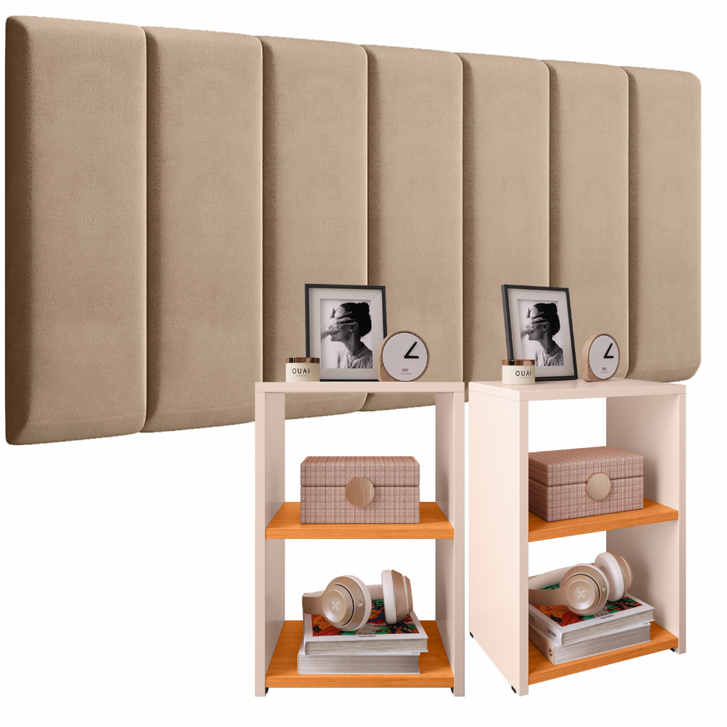 Conjunto 2 Mesa de Cabeceira MAX E Módulos adesivo Cabeceira Quarto Modulada Estofada Julia 0,90 / 1.40 / 1,60 / 1,95