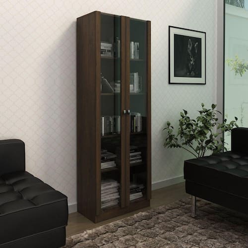 Armário Multiuso 2 Portas de Vidro 4 Prateleiras Tecno Mobili Nogal