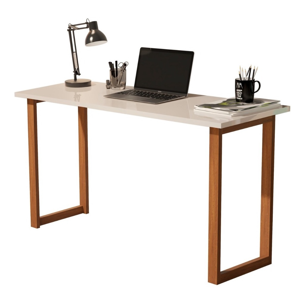 Escrivaninha JOB Pés de Madeira Nature/Off White 87480 Imcal Móveis
