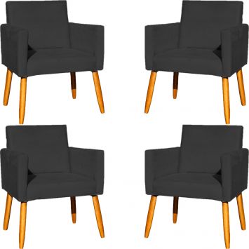 Kit 4 Poltronas Decorativas Para Sala, Manicure, Quarto, Nina Suede Preto Pé Castanho - Clique E Decore