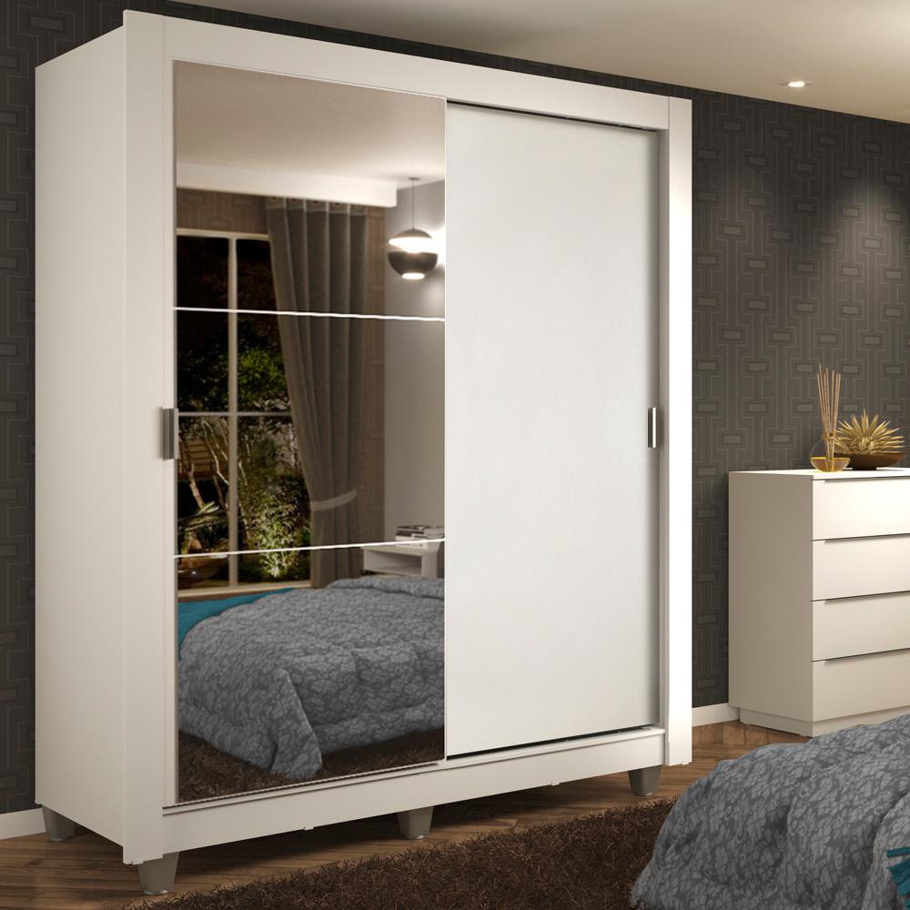 Guarda-Roupa Solteiro Madesa Dallas 2 Portas de Correr com Espelho 2 Gavetas com Pés - Branco