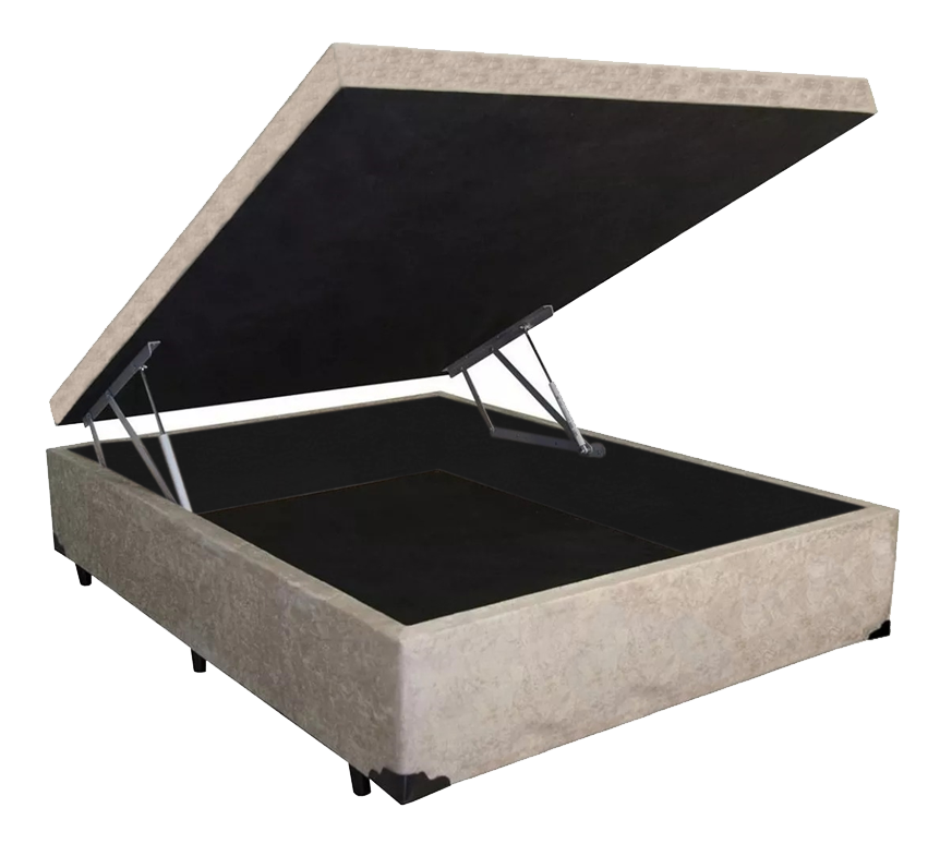 Base Box Baú Casal em suede bege com Pistão a gás - 138x188
