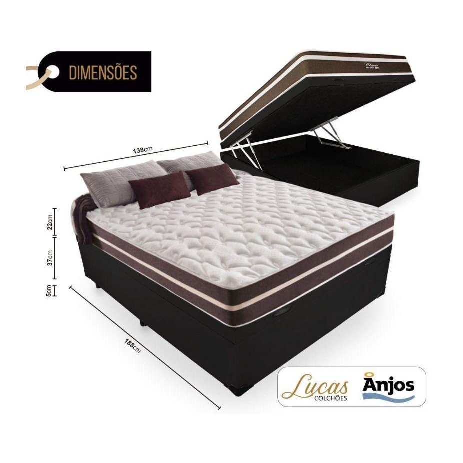 Cama Box com Baú Casal + Colchão de molas - Anjos - Classic Superlastic 138cm - Preto