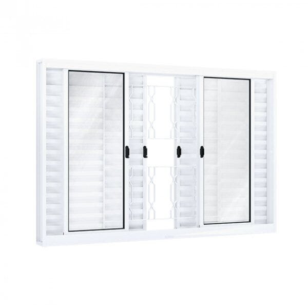Janela de Correr Aço Veneziana 6 Folhas com Grade Quadrada Riobras 120cmx150cm Branco