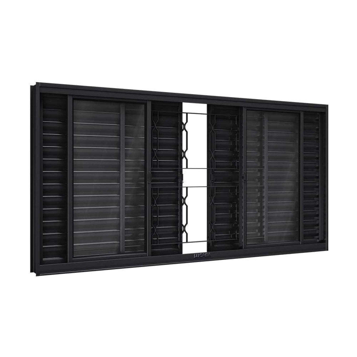 Janela de Correr Aço 6 Folhas Veneziana com Grade Quadrada e Vidro Abertura Central 100cmx150cm Riobras