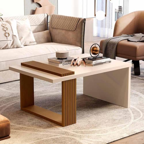 Mesa De Centro Retangular Para Sala Pérola Nature 8020 JB Bechara - Bege