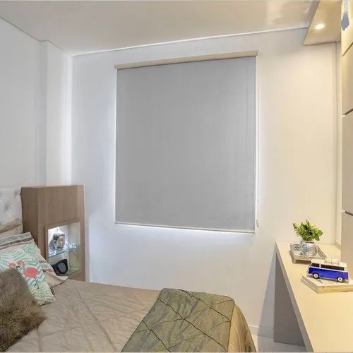 Cortina Persiana Rolô Cinza Blackout 1,10m x 1,40m Veda Luz Blecaute Quarto Sala Escritório