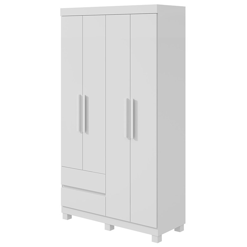 Guarda-Roupa Solteiro 4 Portas 2 Gavetas com Pés Zeus Lopas - Branco