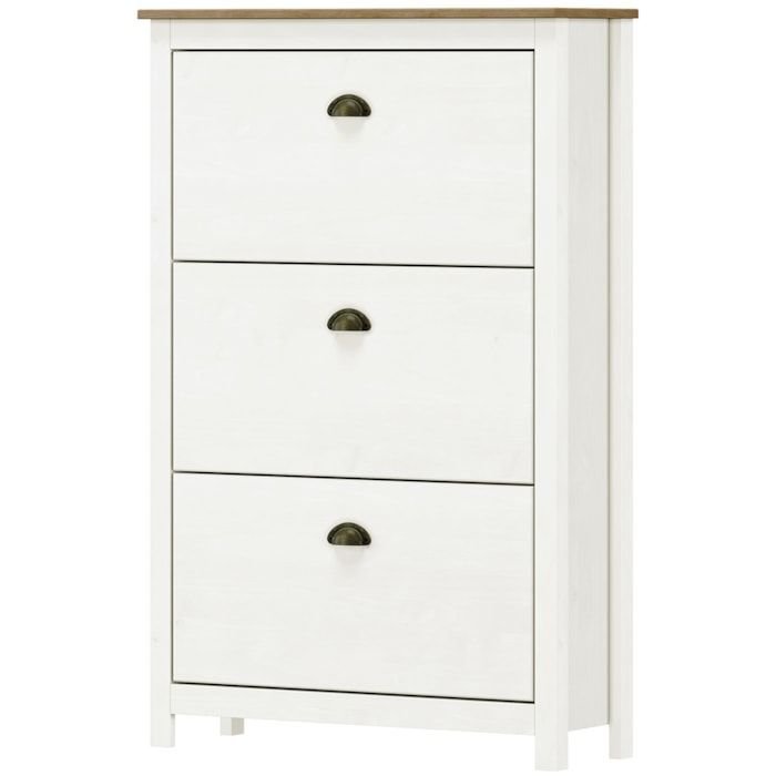 Sapateira Basculante Madeira 3 Gavetas Basil Mel Branco