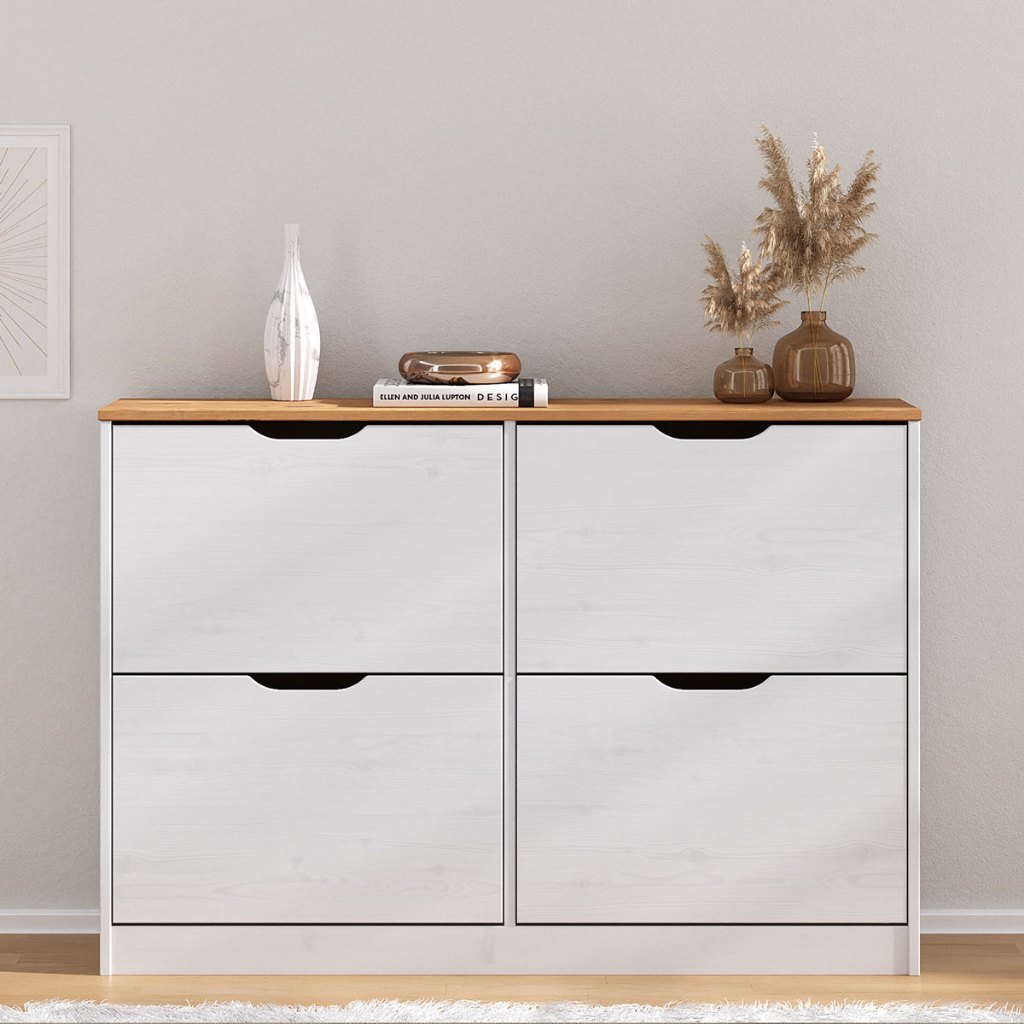 Sapateira Basculante Madeira 3 Gavetas Basil Mel Branco