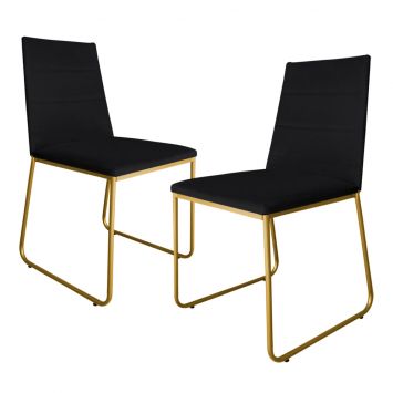 Kit 2 Cadeiras de Jantar Estofada Lille Base Gold Veludo Preto - Montanaris Decor