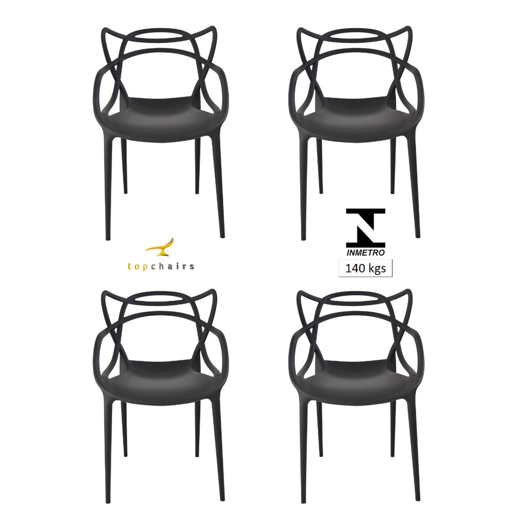 Cadeira Rattan Preta Top Chairs - Kit com 4