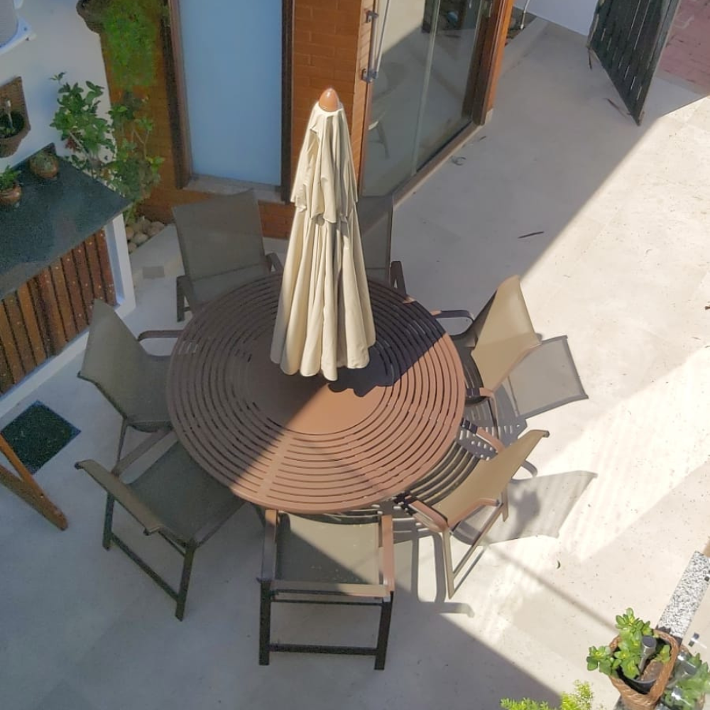 Jogo de Mesa com 6 Cadeiras e Guarda Sol