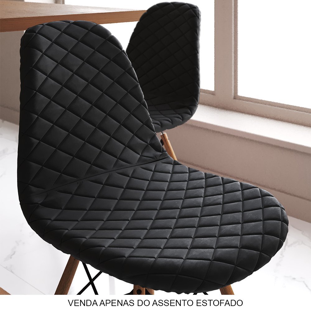 Assento Estofado Preto para Cadeira de Jantar Eames Eiffel