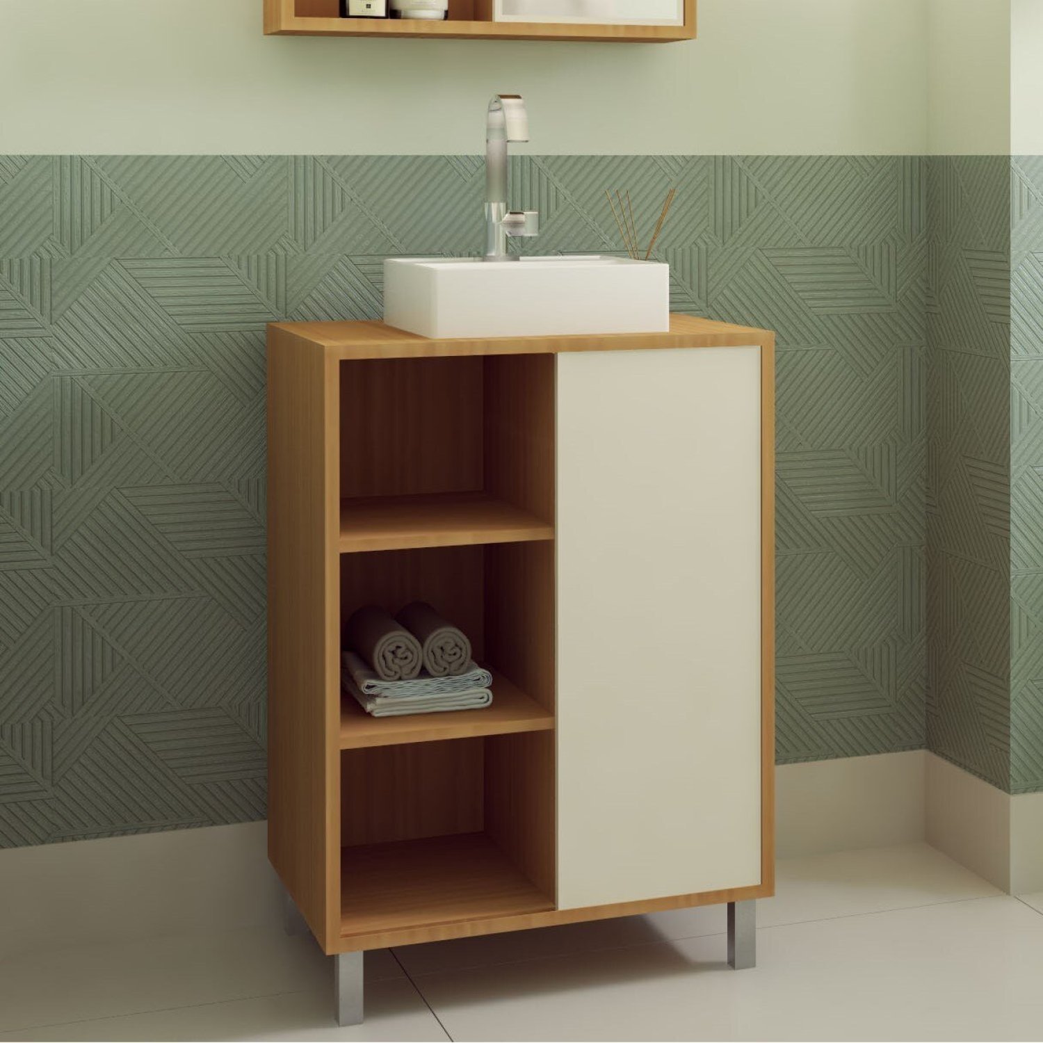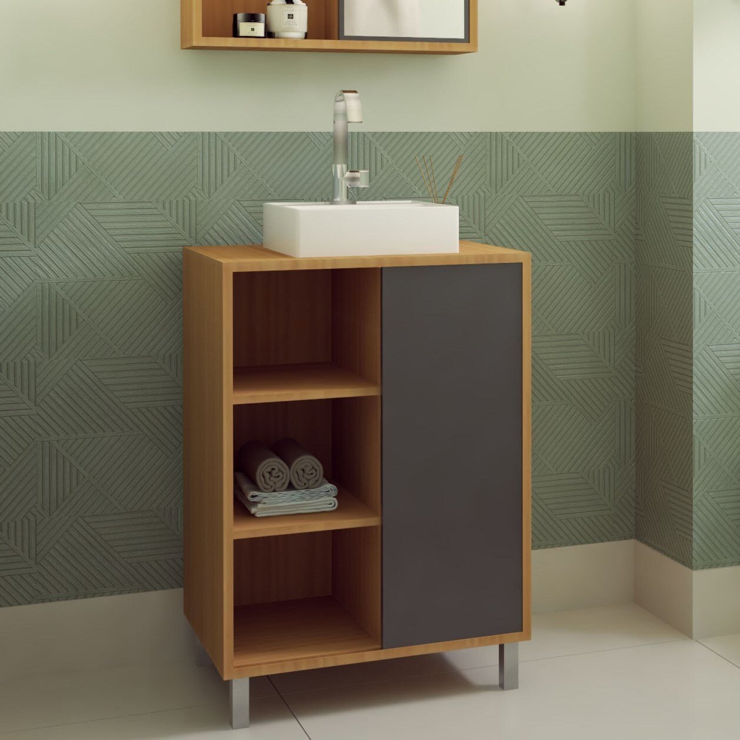 Gabinete para Banheiro 60cm com 1 Porta 2 Nichos e Cuba de Sobrepor Noruega
