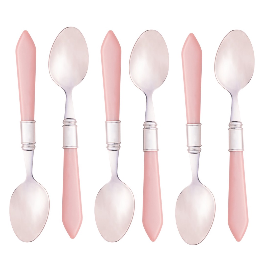 Jogo 6 Colheres de Mesa Aço e Plástico Lyor Rosa 21cm
