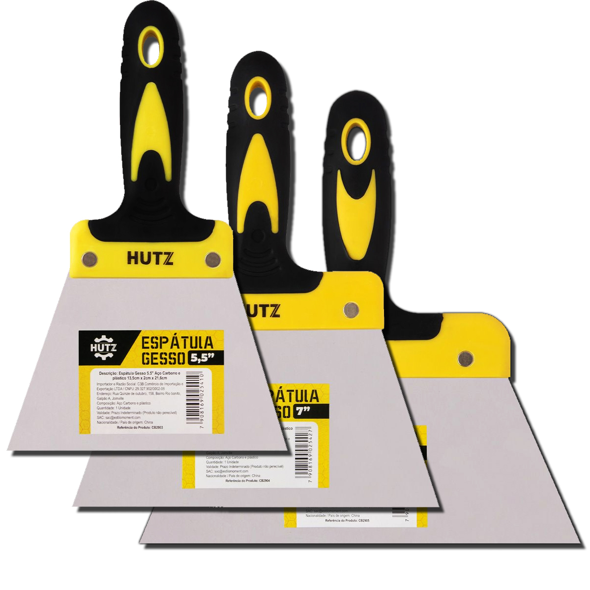 Kit Espátula de Aço Polido Profissional Multiuso Para Massa Gesso e Outros Espátula Com Cabo Emborrachado