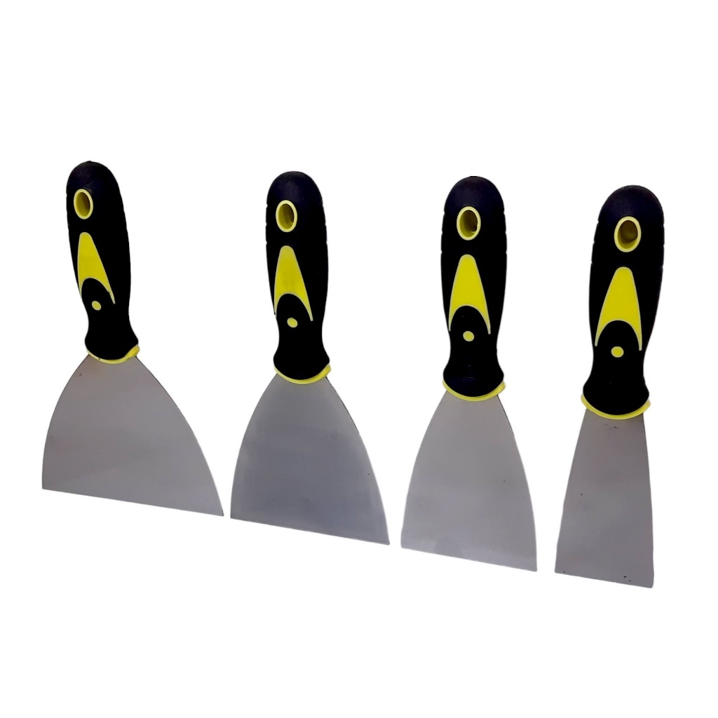 Kit 4 Espátula Para Massa Gesso Pintura Aço Polido Cabo Emborrachado