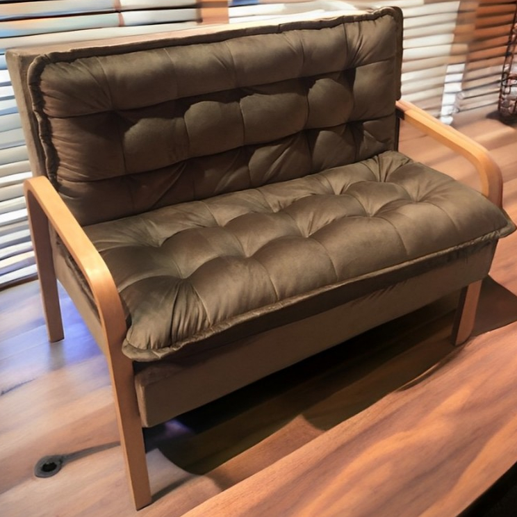 Poltrona Decorativa Sofá 2 Lugares para Escritório Sala Braços de Madeira