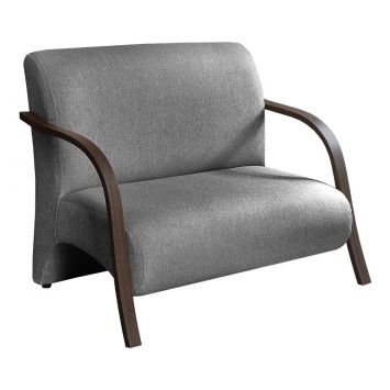 Poltrona Sofá Namoradeira 2 Lugares Decorativa Confortável para Quarto Sala de Espera Recepção Em Suede Cinza Braço de Madeira