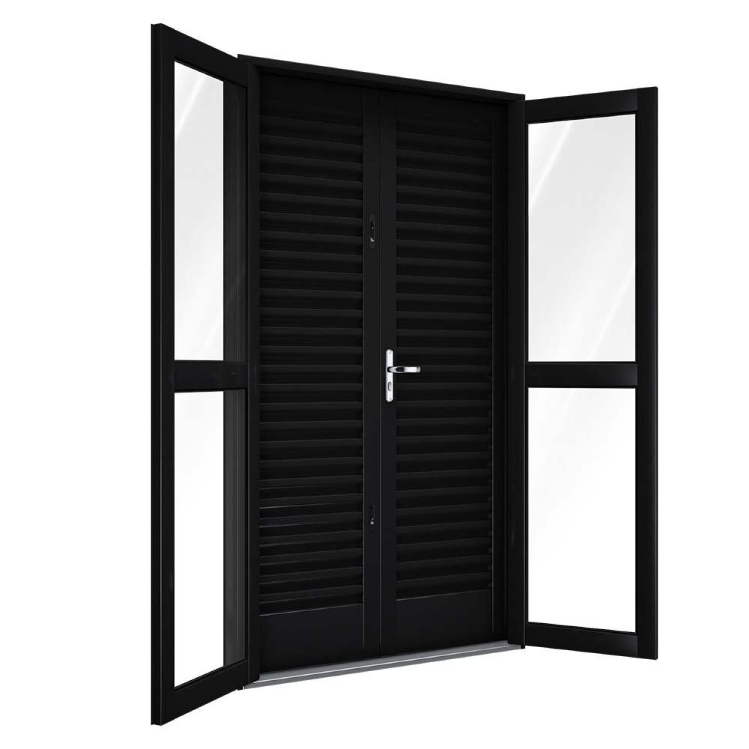 Porta de Alumínio de Correr 4 Folhas Com Trinco Abertura Central 210x200cm Preto Allo Esquadrias