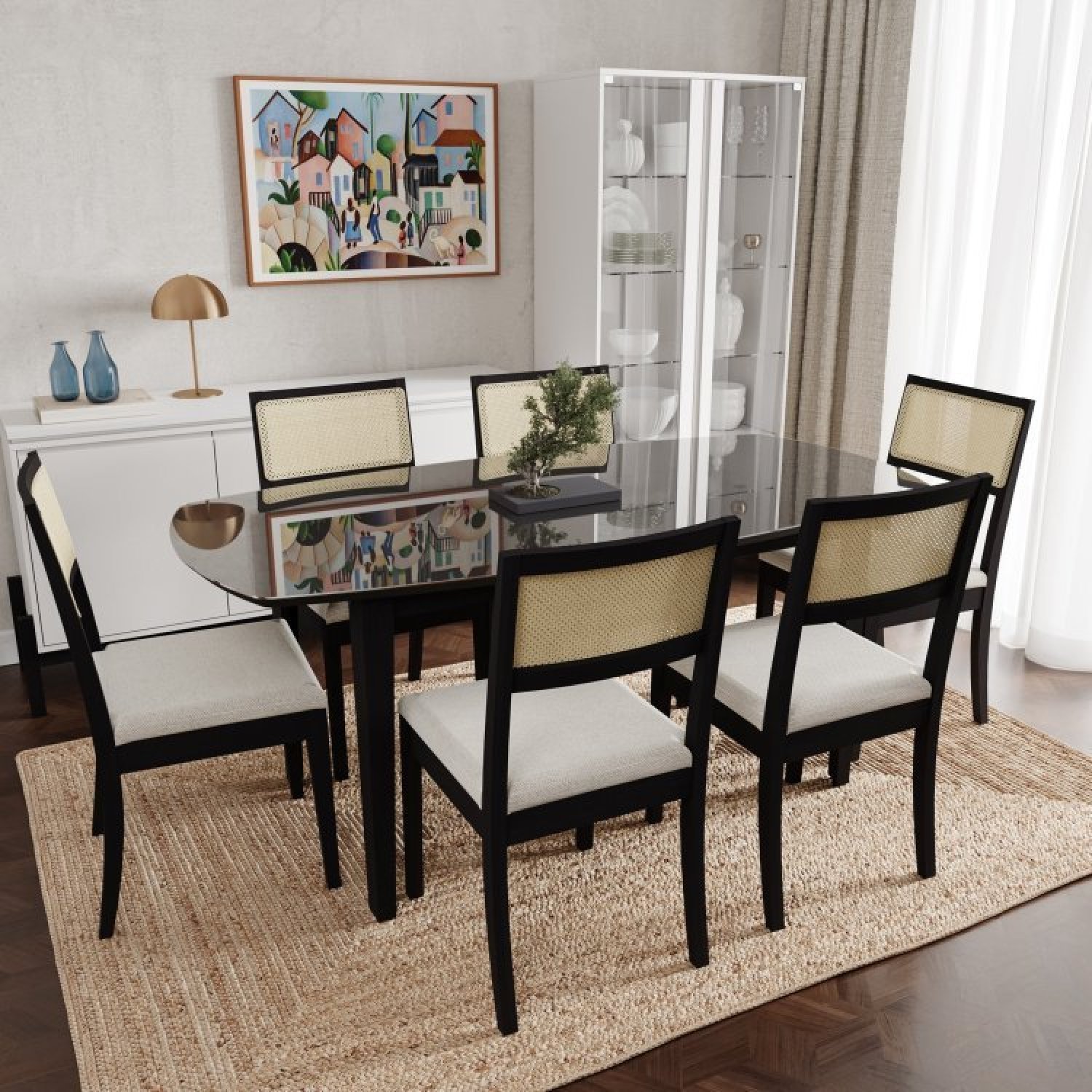 Conjunto Mesa de Jantar Tampo Vidro e MDF 1,80m e 6 Cadeiras Tiê CabeCasa MadeiraMadeira