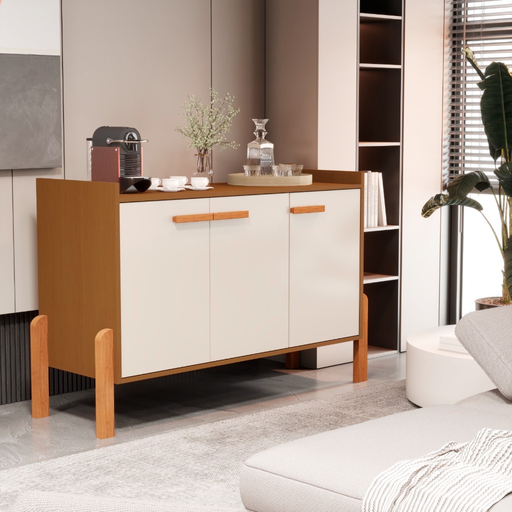 Aparador Buffet Retrô Sala Jantar Pés em Madeira Cretta 3 Portas Cantinho Do Café Shark Móveis