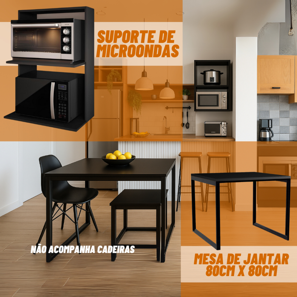 Conjunto Mesa de Jantar 4 Lugares + Armário para Cozinha – Estilo Industrial e Funcionalidade