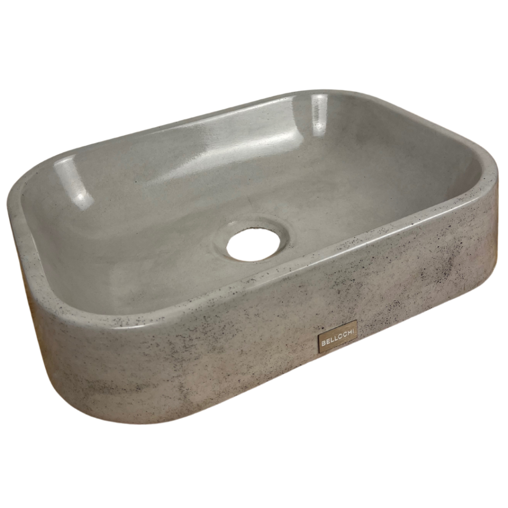 Cuba Banheiro Lavabo de Apoio Pia Sobrepor Retangular Industrial Cinza Concreto Baixa Pequena