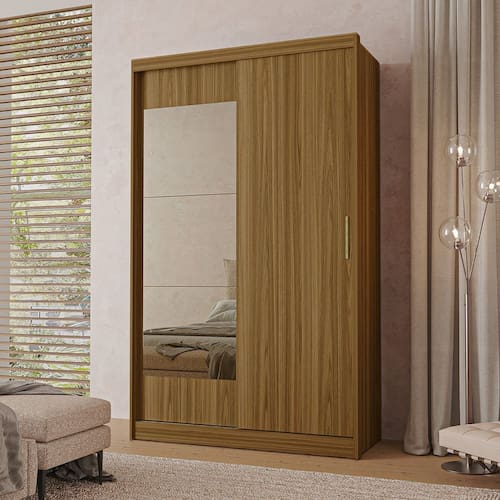 Guarda Roupa Solteiro com Espelho 2 Portas de Correr 4 Gavetas Itália Yescasa Freijó