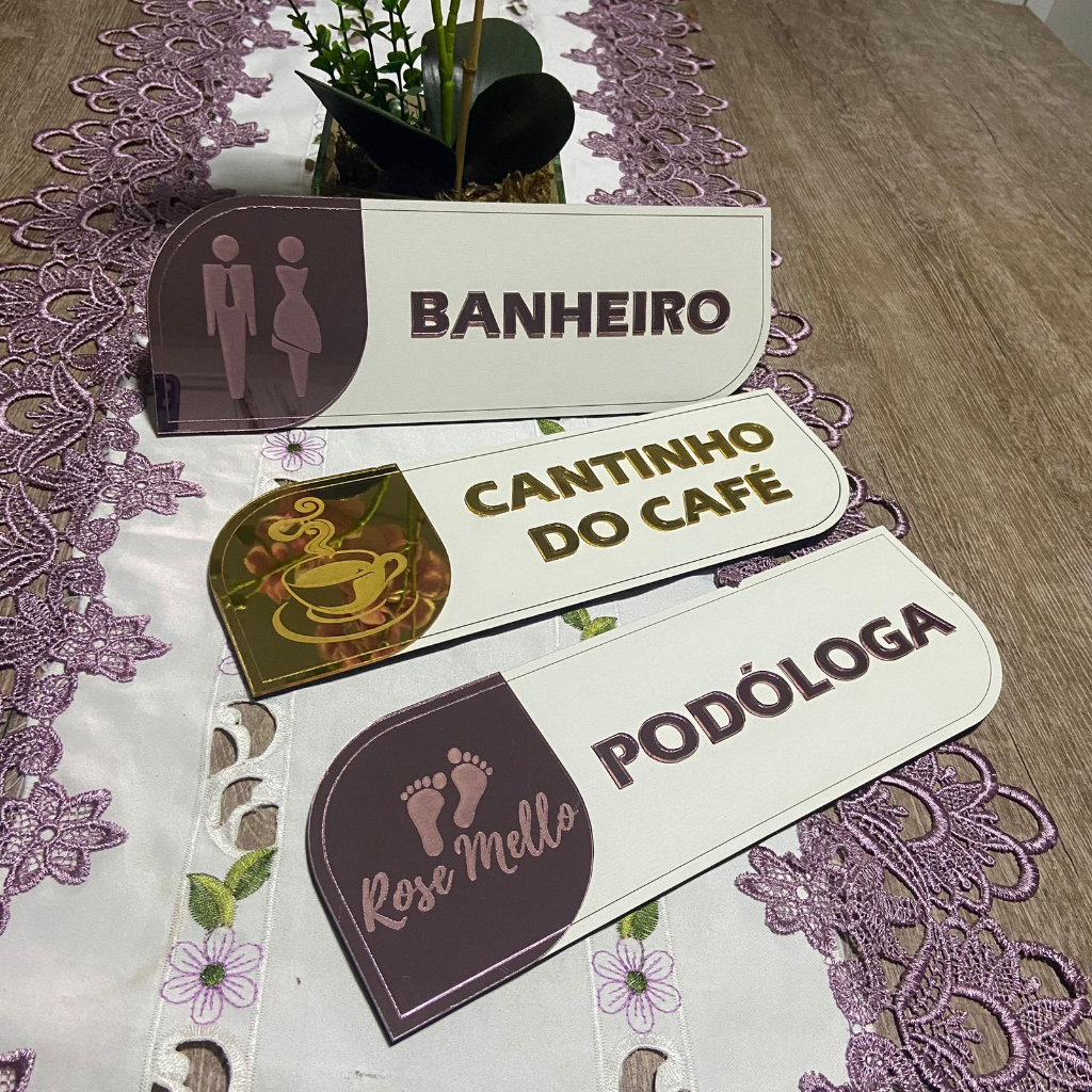 Placa Identificação de Porta, Banheiro, Copa, Cantinho do café, Em MDF branco com ACRILICO espelhado.