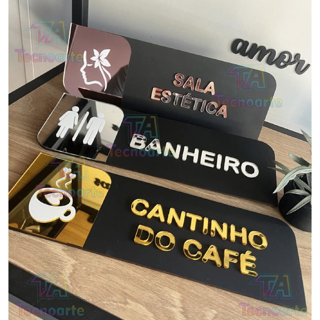 Placa Identificação de Porta Em MDF PRETO com ACRILICO espelhado. Banheiro, Copa, Cantinho do café, Acesso Restrito, Estetica