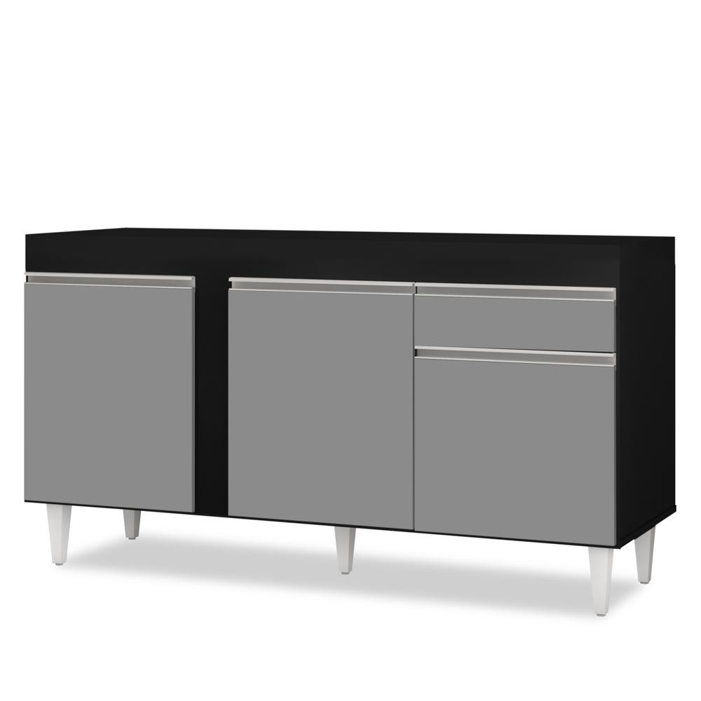 Balcão Gabinete Para Pia 150cm Sem Tampo 3 Portas 1 Gaveta Dakota Preto/Cinza - Lumil