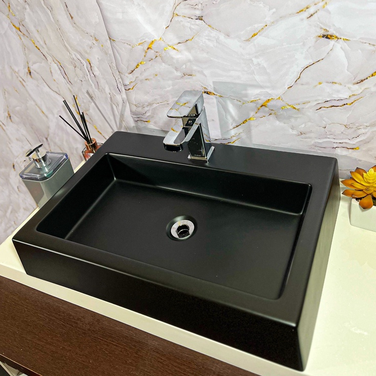 Cuba para banheiro de apoio Preto Fosco 48x36 Prisma em mármore sintético retangular
