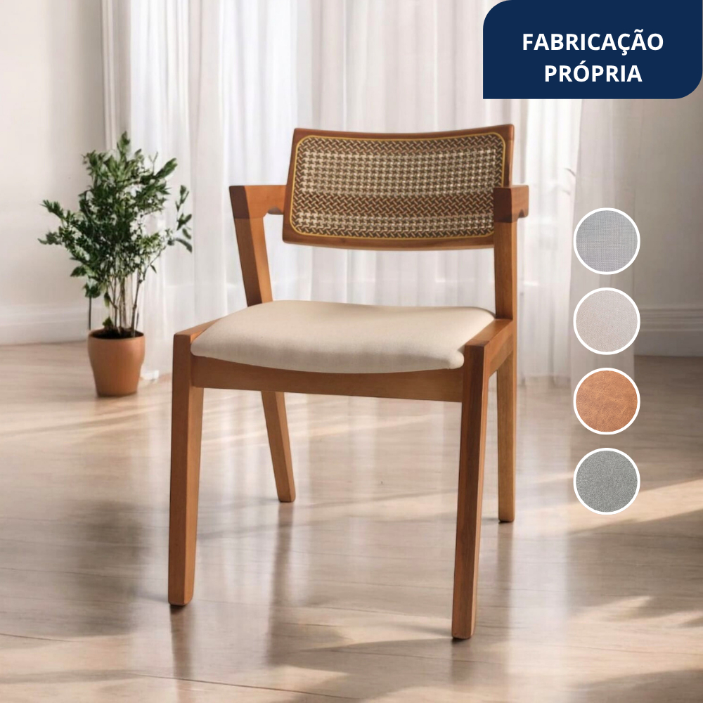 Cadeira de Jantar Ika Amêndoa e Linho Off White com Tela - WP 59076