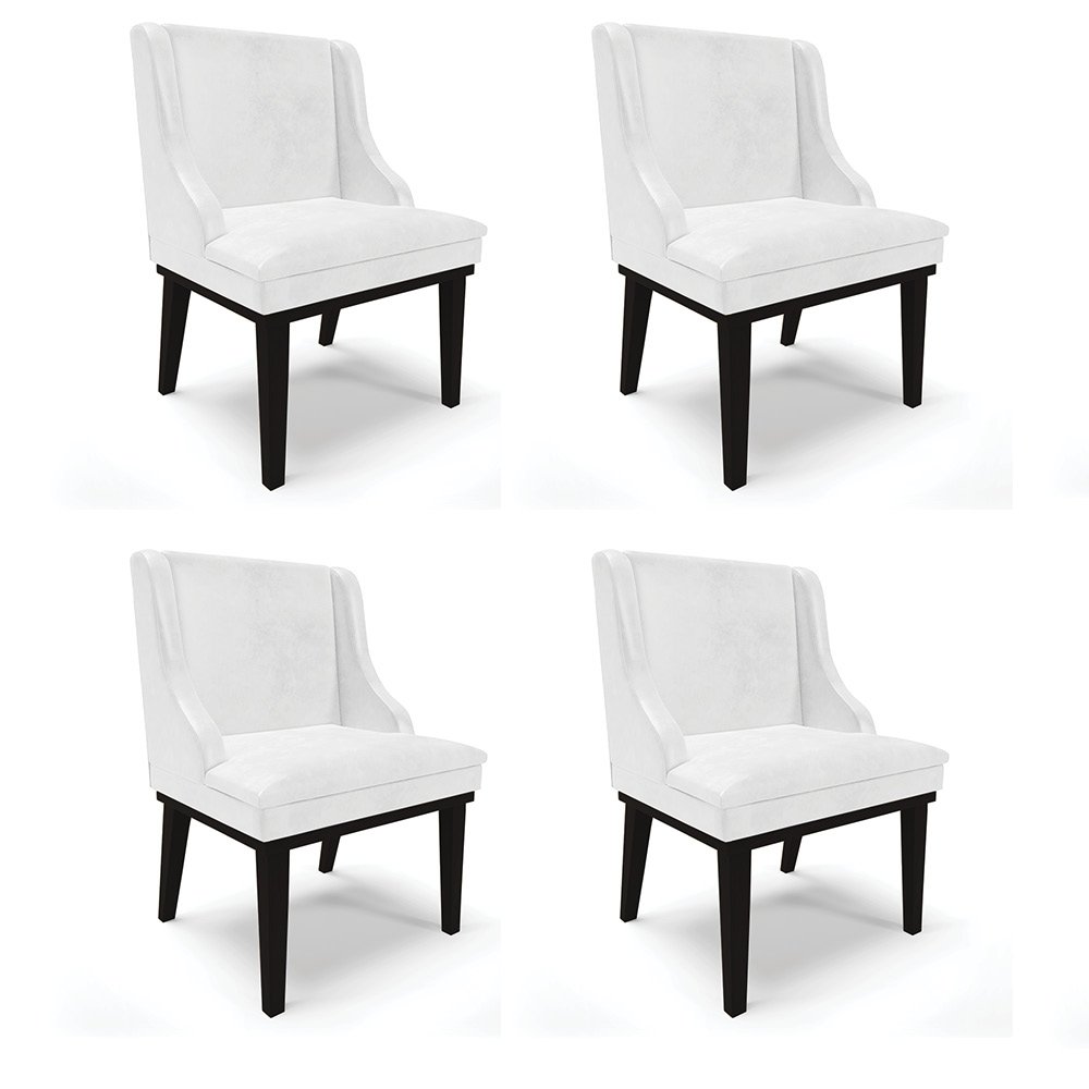 Kit 04 Cadeiras de Jantar Liz Corano Base Fixa Madeira Preto - D'Rossi - Branco