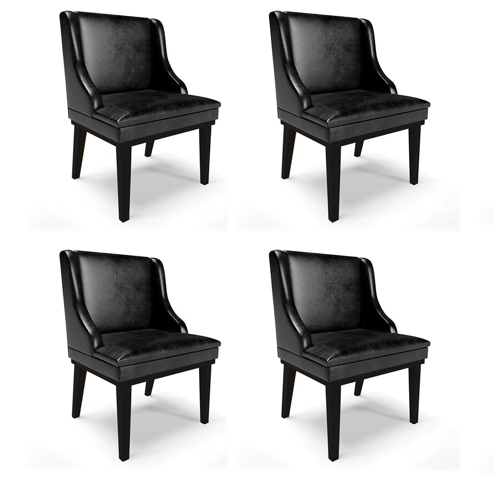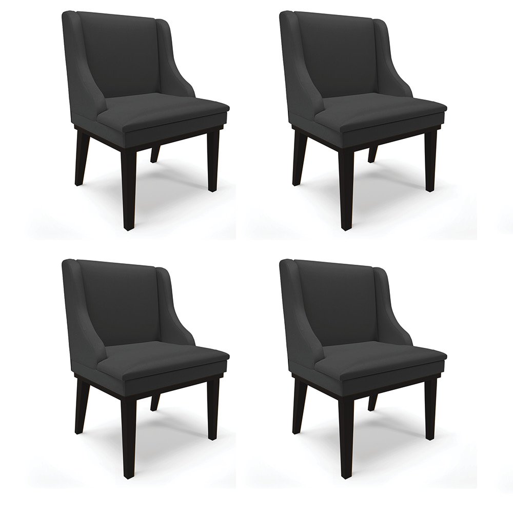 Kit 04 Cadeiras de Jantar Liz Corino Base Fixa Madeira Preto - D'Rossi - Preto