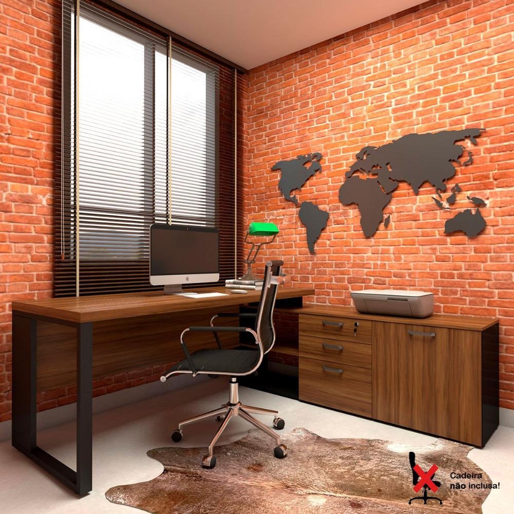 Mesa Em L Escritório Diretor Madeira e Metal Apoio de Canto 150x150