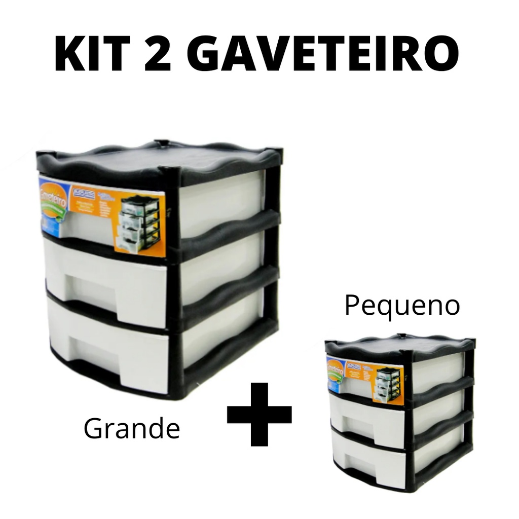 Kit 2 Gaveteiro de Mesa Retangular + 1 Gaveteiro Grande + 1 Gaveteiro Pequeno C/ 3 Gavetas