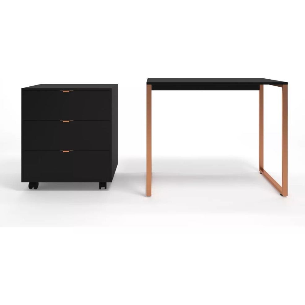 Kit Mesa Escrivaninha 1,35m + Gaveteiro 3 Gavetas Escritório Cor:freijó com Preto Fosco