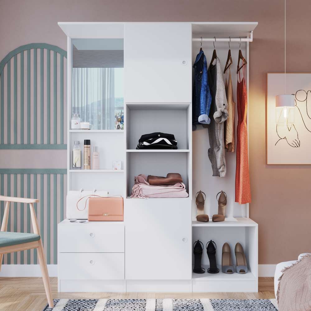 Guarda Roupa Closet C/ Espelho 136,6cm 02 Portas e 02 Gavetas Gr1400 Art In Móveis - Branco
