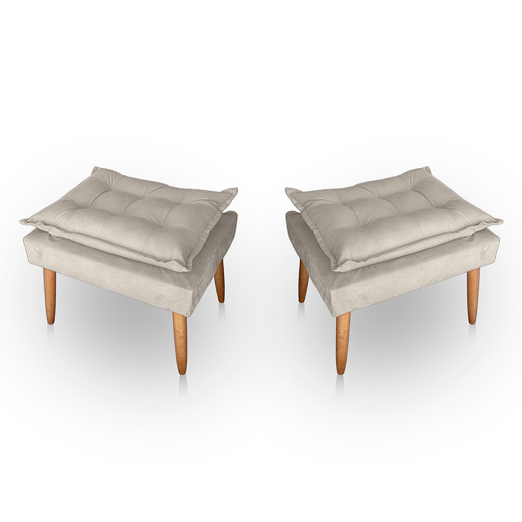 Kit 02 Puff para Sala e Quarto Madeira Decorativo Opala Suede bege - Bege