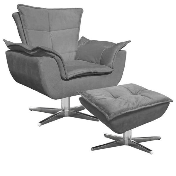Poltrona Decorativa Base Giratória Cromada com Puff Opla Suede Grafite - Ibiza