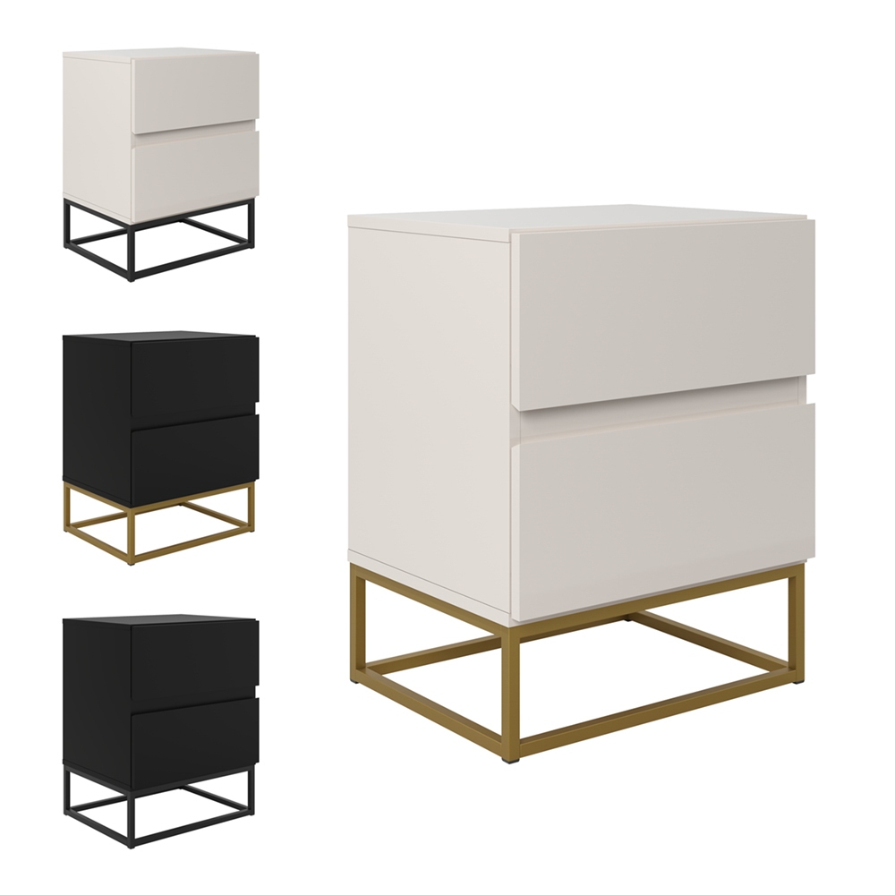 Mesa de Cabeceira Eros 2 Gavetas Estilo Industrial Off White com Pés Dourado