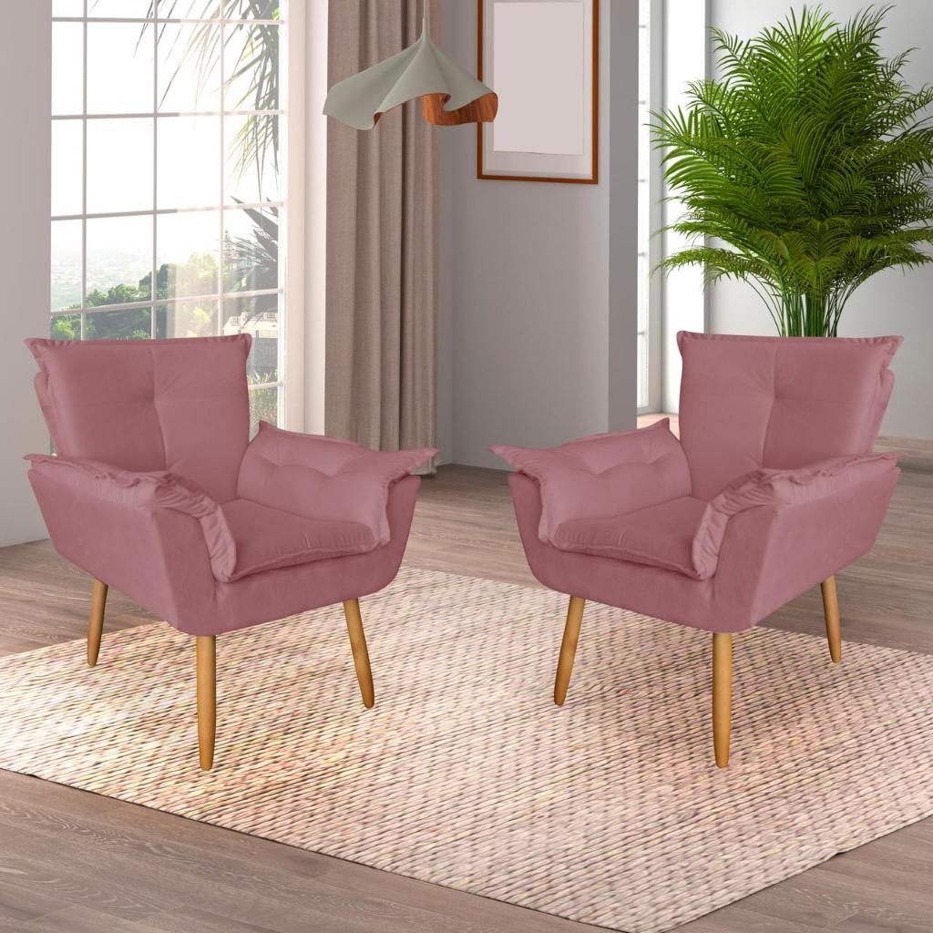 Kit 2 Poltronas Decorativa Opala Pés Palito Suede Bege