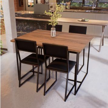 Conjunto Mesa de Jantar Retangular Imbuia 4 Cadeiras Estofado Riviera Industrial Preto