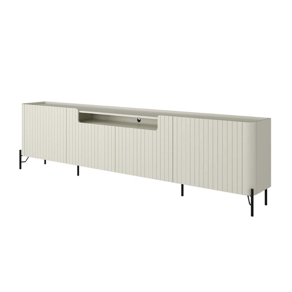 Rack com 4 Portas Lisas 220cm para Sala 100% Mdf Pés Metal Cor:luna com Preto