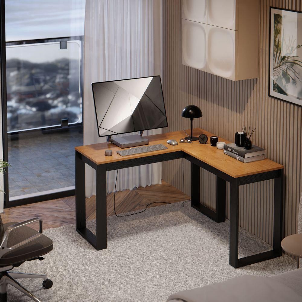 Mesa Em L Estilo Industrial Escrivaninha De Canto Escritório Estudo Beni Camaleão